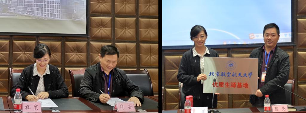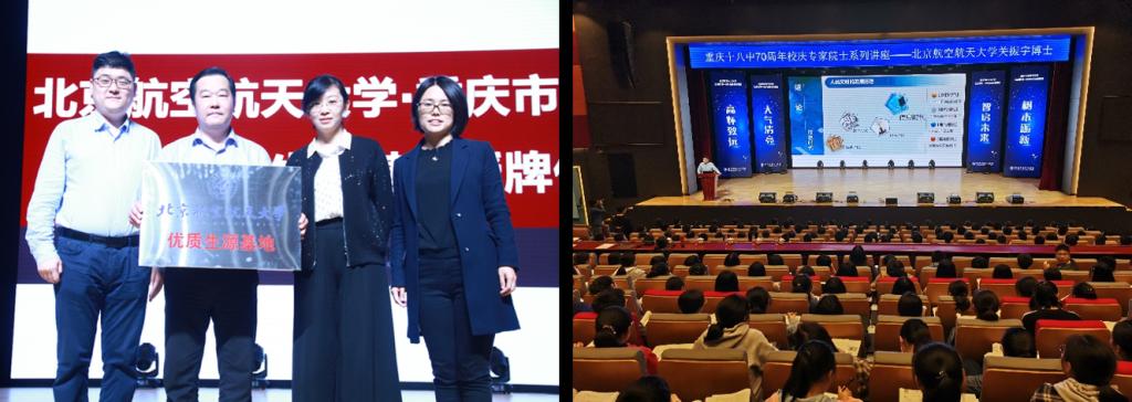 2019年4月15-16日,北航重庆招生组赴渝开展招生宣传活动。澳门网投唯一官网党委副书记祝贺、澳门网投唯一官网重庆招生组副组长李圆圆、澳门网投唯一官网关振宇一行走进重庆市第十八中学校和铜梁中学,签署合作协议,建立“澳门网投唯一官网优质生源基地”,并组织“教授进中学”系列报告等招生宣传活动。