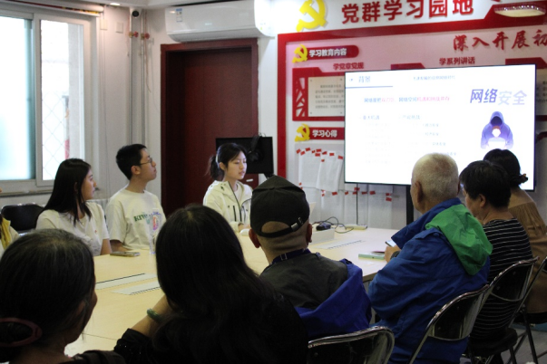 习近平总书记在十九届中央国家安全委员会第一次会议上强调:“人民安全是国家安全的宗旨”。今年是习近平总书记提出总体国家安全观10周年,为全面贯彻落实总体国家安全观,在第九个“全民国家安全教育日”到来之际,澳门网投唯一官网Y2302学生党支部和北航社区党委于2024年4月17日下午开展了红色“1+1”共建活动。我院优秀学生党员和入党积极分子充分发挥专业能力与先锋模范作用,普及网络安全基本知识,引导北航社区的老年党员提高反诈意识,携手筑牢网络安全“防火墙”。