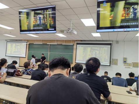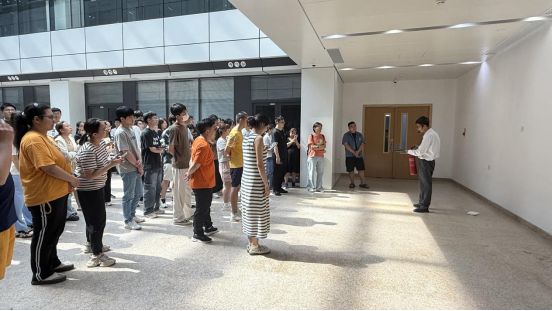 14:30在第一馆B3/C区中庭,第一馆物业服务中心秩序经理刘佳为全院师生系统讲解了消防安全基本知识、第一馆消防设备器材存放位置及操作方法、以及常见的消防安全隐患以及防控措施。他从近几年发生在社会、高校的触目惊心的火灾案例出发,介绍了不同情况下不同的灭火和逃生方式及常见的消防设备,同时还在现场亲自讲解了二氧化碳灭火器的使用方法,包括如何提起灭火器、握住喷管、压下把手等步骤。讲解完毕后,还安排师生现场体验二氧化碳灭火器的使用方法,让师生们通过实际操作,更好地掌握这一重要消防技能。