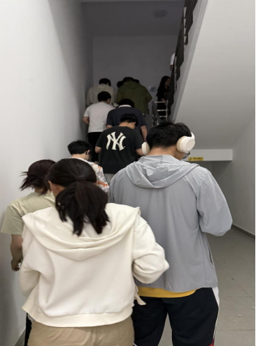 下午6月17日15:00分,我院组织40余位师生开展消防安全应急演练,模拟演练地点为第一馆B3/C区中庭电器起火,引发烟感报火警,“火情”发现者及时按响手动报警,经距离现场最近的物业人员核实确认火情,发现公区烟雾较大。并第一时间向学院消防安全领导小组以及物业中控室报告《启动火警应急预案》,组织火灾补救,启动消防设备(消火栓),后因火势较大,为保障楼内人员安全,学院消防安全领导小组立即组织参与演练的师生从安全路线有序撤离到预定的火灾疏散集结地一馆一层。