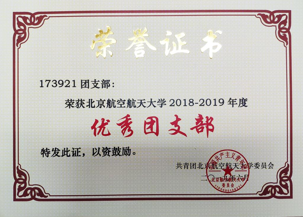 为加强我校共青团的基层组织建设,推动团支部职能化建设,围绕立德树人根本任务,激励基层团支部学习贯彻习近平新时代中国特色社会主义思想,以“四进”为手段,以“四信”为目标,切实学习和践行社会主义核心价值观,弘扬北航“四爱精神”,深入开展“青春心向党·建功新时代”教育实践,创先争优,激励和引导广大团员大力弘扬爱国主义精神,推动各级团组织工作水平的提高。校团委在全校开展2018—2019学年度校 “优秀团支部”评选活动,澳门网投唯一官网173921团支部获2018—2019学年度校“优秀团支部”荣誉称号,予以表彰。