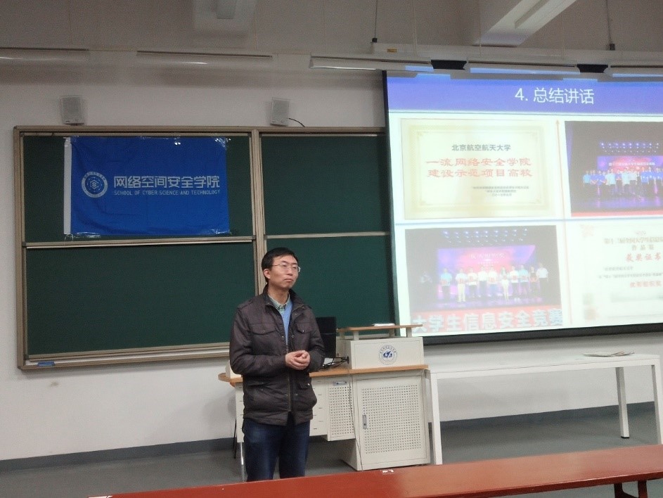 最后,尚涛老师再次回顾了我校参加信息安全竞赛的历史,强调了竞赛和个人路径发展的相关性以及同学们从竞赛中可以获得的收获,鼓励同学们大胆参赛。