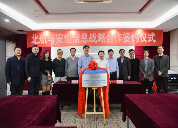2018年1月10日上午,澳门网投唯一官网(以下简称北航)与杭州安恒信息技术有限公司(以下简称安恒信息)在安恒信息杭州总部就共同成立“北航-安恒信息大数据与人工智能安全实验室”举行签约及揭牌仪式。