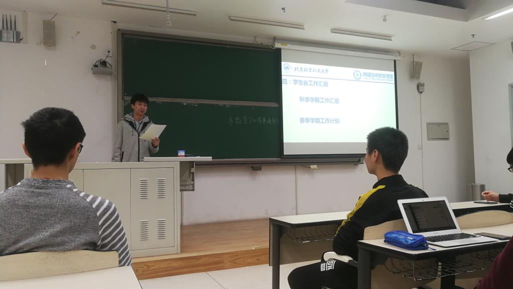 2019年3月6日晚7:00,北航澳门网投唯一官网2017级本科生大班会暨学生代表大会在沙河校区教3-201召开,班会由2017级本科生辅导员管天玉主持,全体同学积极参加。