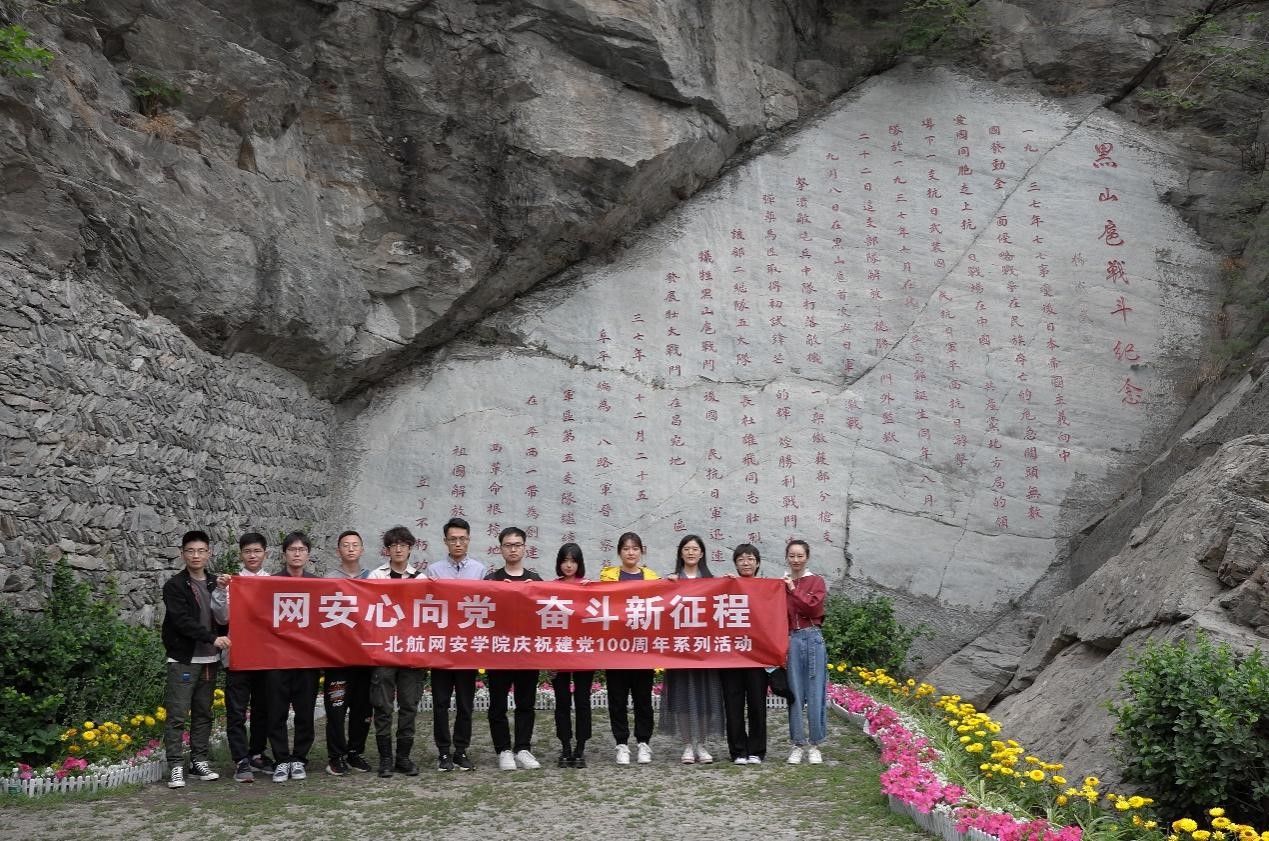 在建党百年之际,为积极响应习近平总书记开展党史学习教育的号召,继承和发扬革命先辈的红色精神,加强党员思想政治教育,2021年5月15日上午10时,北航澳门网投唯一官网Y1901和Y1902学生党支部在百望山森林公园黑山扈战斗纪念园组织举办了庆祝建党100周年系列活动之“网安心向党 奋斗新征程”主题党日活动。学生党支部12名党员同志参与。